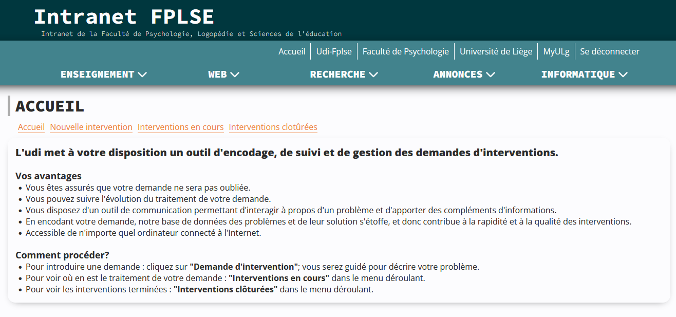 L'unité informatique a développé un système d'encodage, de suivi et de gestion des demandes d'interventions.